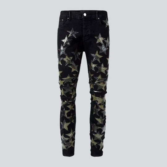 Men's black-patches jeans