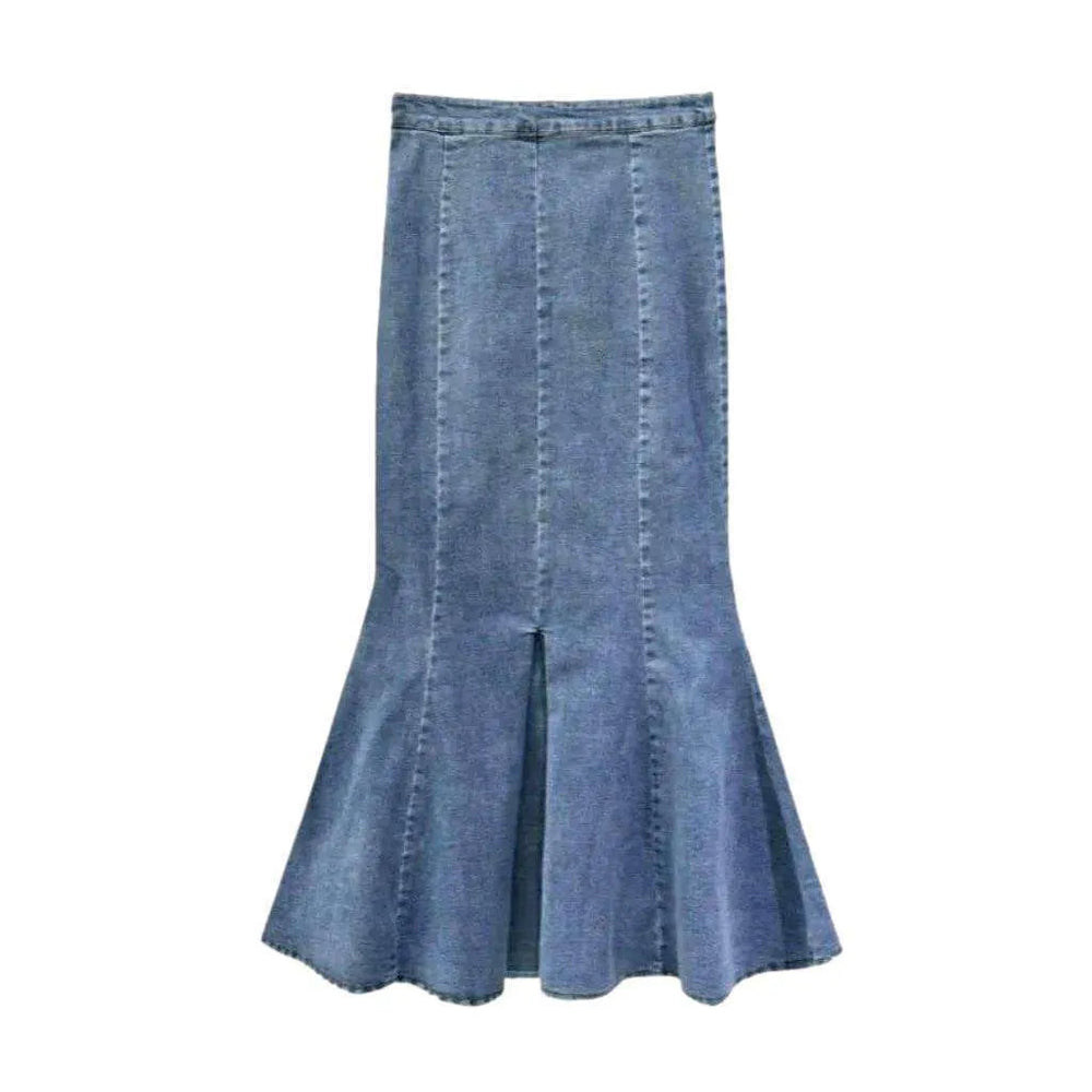 Introducing the 2023 Spring-Summer Collection's Boho-Style Floor Length Long Denim Skirt – the perfect combination of style and comfort! This high-waist skirt features a unique painted ornament print, dark wash finish and a rubber closure for maximum convenience.
