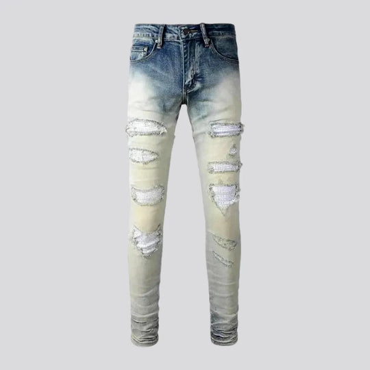 Skinny patchwork jeans for men