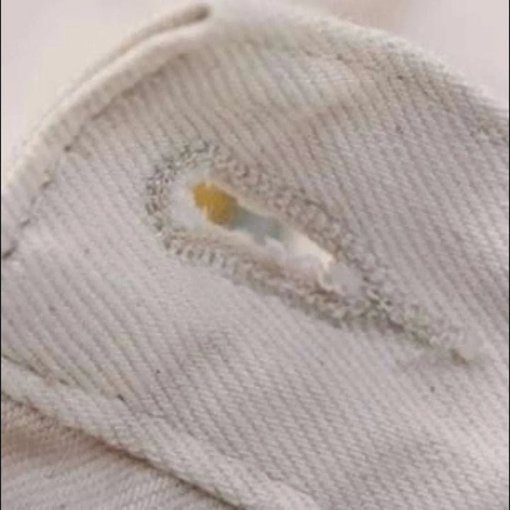 Experience the pinnacle of luxury and mode with our classic, monochrome, straight, ivory, mid-waist jeans. Crafted with the finest quality materials, these jeans are patterned to provide ultimate comfort and a timeless aesthetic.