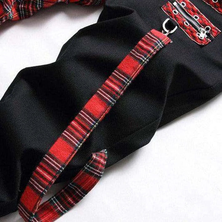 Introducing the 2023 Autumn Collection – punk-inspired men's jeans with belts! Featuring a street-style patchwork pattern, a mid-waist fit, and a zipper and button closure, these jeans are patterned to make you look and feel both stylish and relaxed. Crafted from stretchy and durable denim, they are the perfect blend of both contemporary fashion and nostalgic grunge.