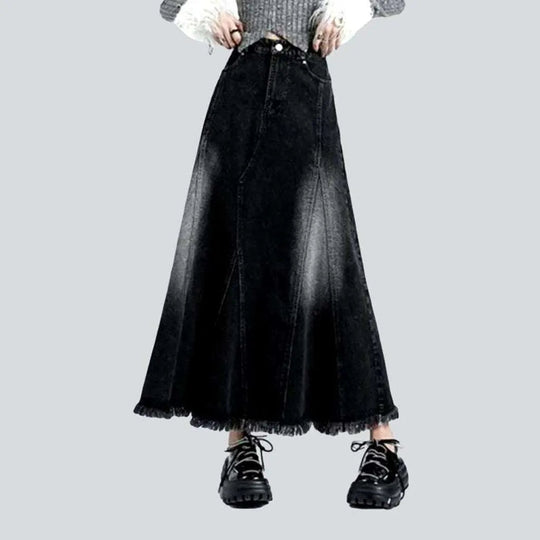 Raw-hem long women's jeans skirt